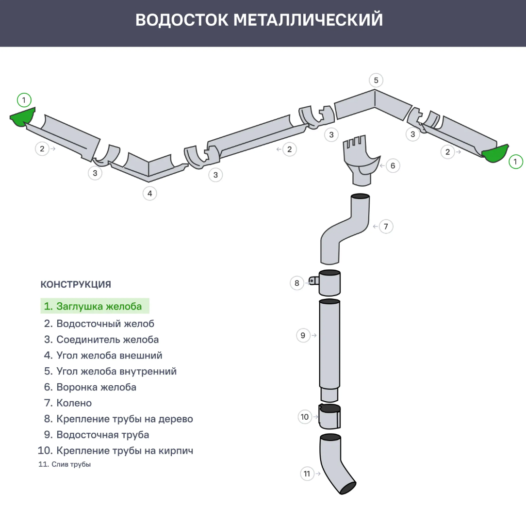 - Заглушка с прямоугольным профилем подходит для желоба соответствующей формы.