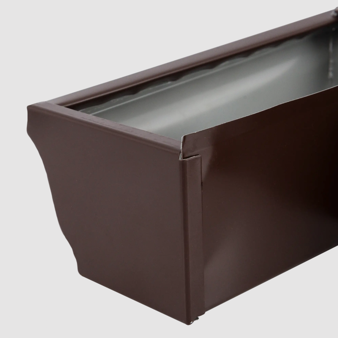 Заглушка правая фиксируется на торцах желоба и предотвращает протечку дождевой или талой воды. Прочный материал заглушки обеспечивает жесткость и надежность конструкции. Коричневый оттенок элемента подбирается под цвет желобов и других частей водостока.